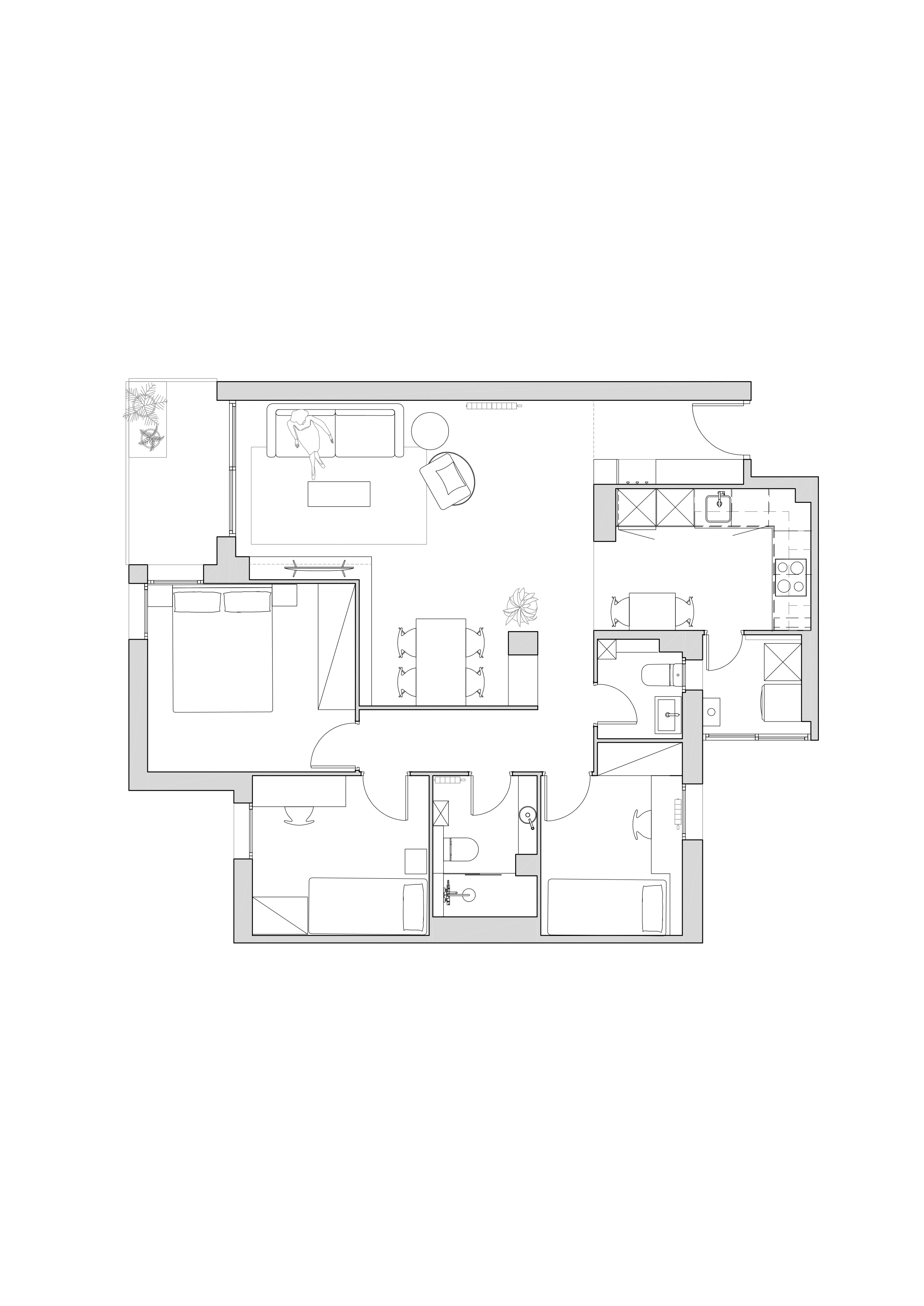 Con este fin se propuso cambiar la orientación del sofá y de la televisión para tener mejores vistas, disponer un armario con la capacidad necesaria de almacenaje en el recibidor, se embellecieron los baños, se optimizó la distribución tanto de la cocina como del lavadero, se sustituyó el parquet original por otro nuevo proporcionado por Daiba y se le dio una nueva pátina de blanco al dormitorio principal.